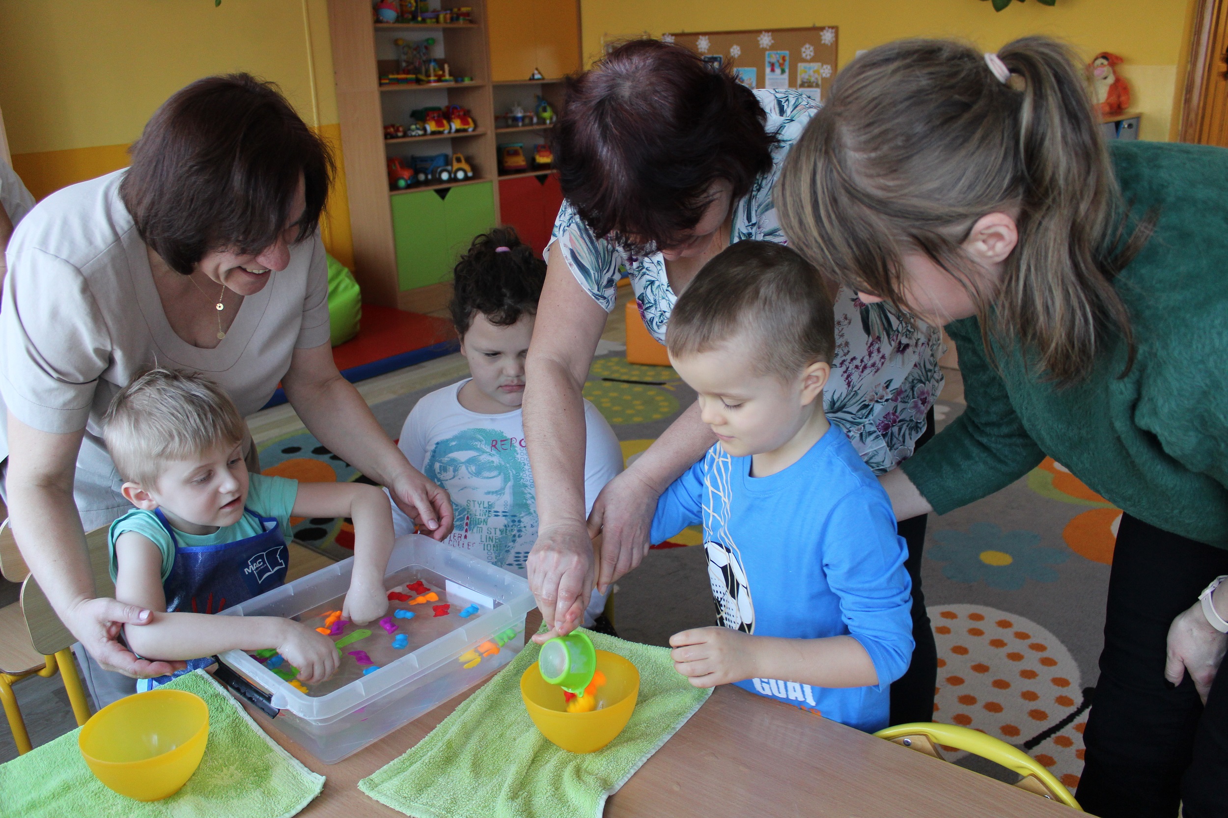 Przyszli wychowankowie i ich rodzice obserwowali ponadto zajęcia prowadzone przez wychowawców poszczególnych grup. Były to zajęcia doskonalące u dzieci sprawność manualną, sprawność ruchową, wzbogacające ich wiedzę o świecie i środowisku.