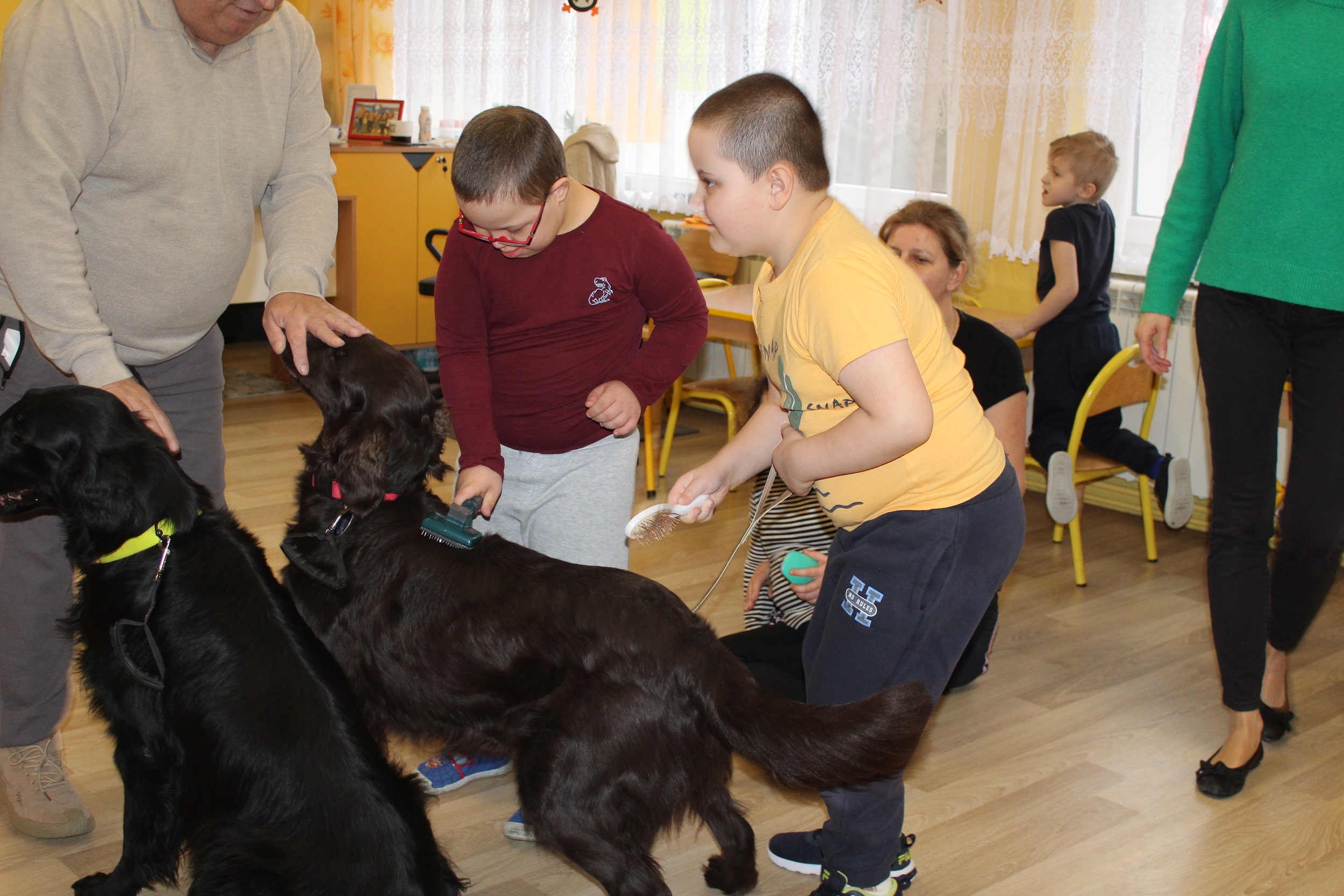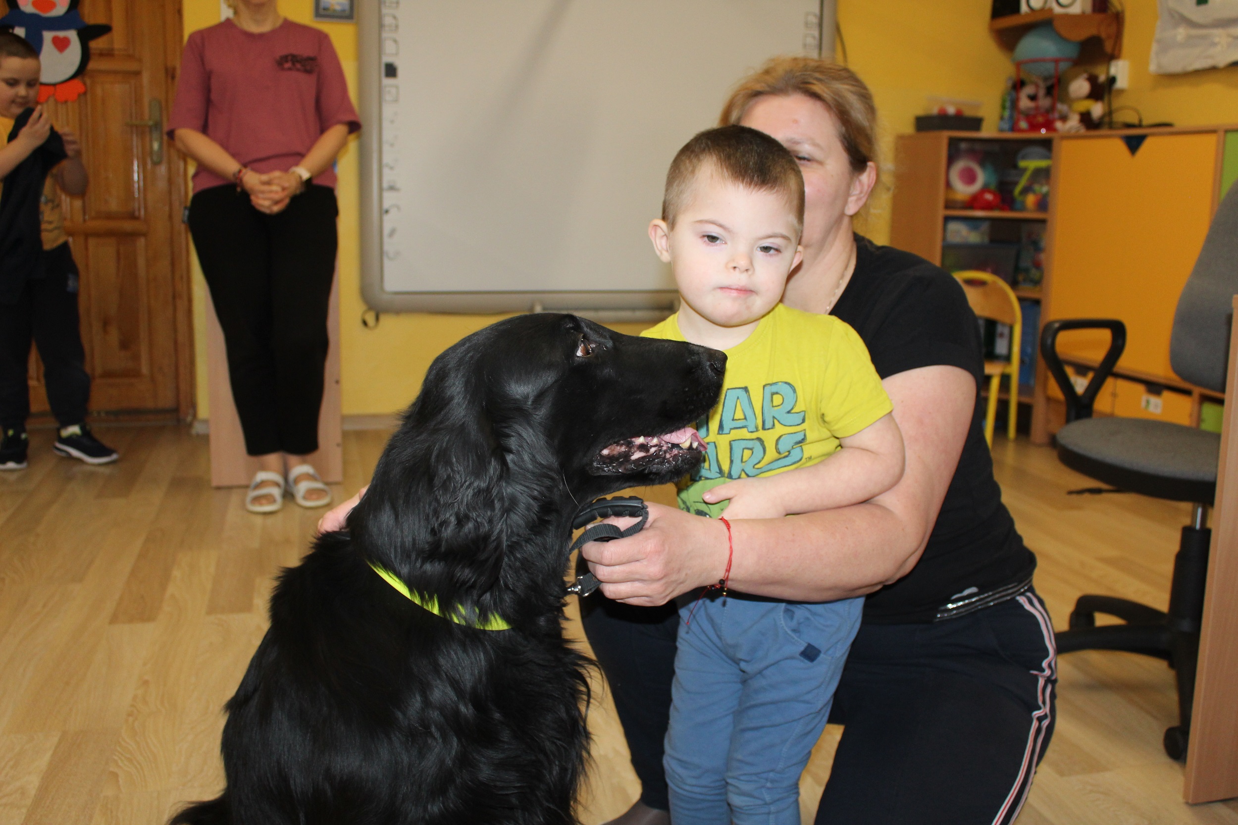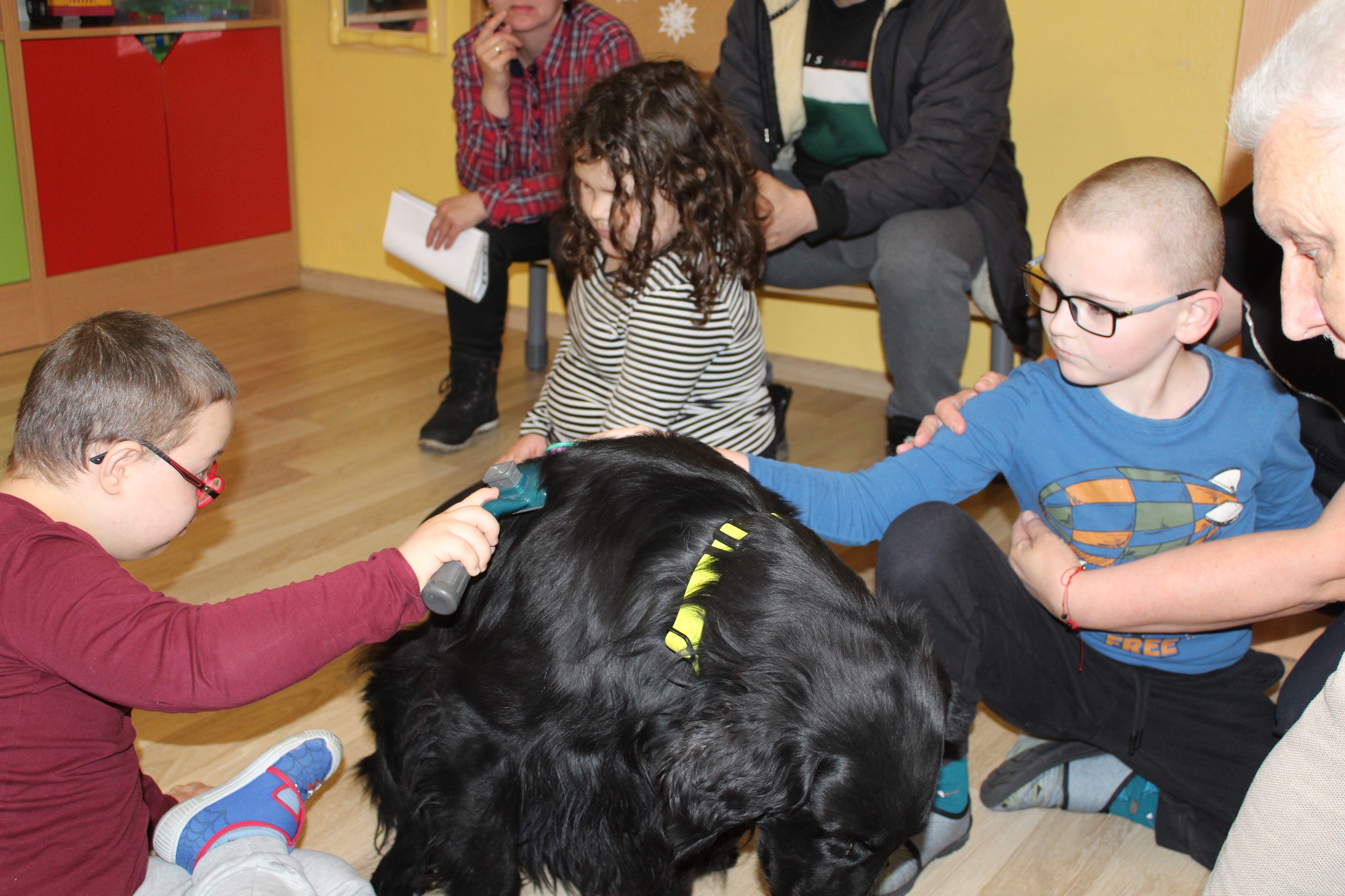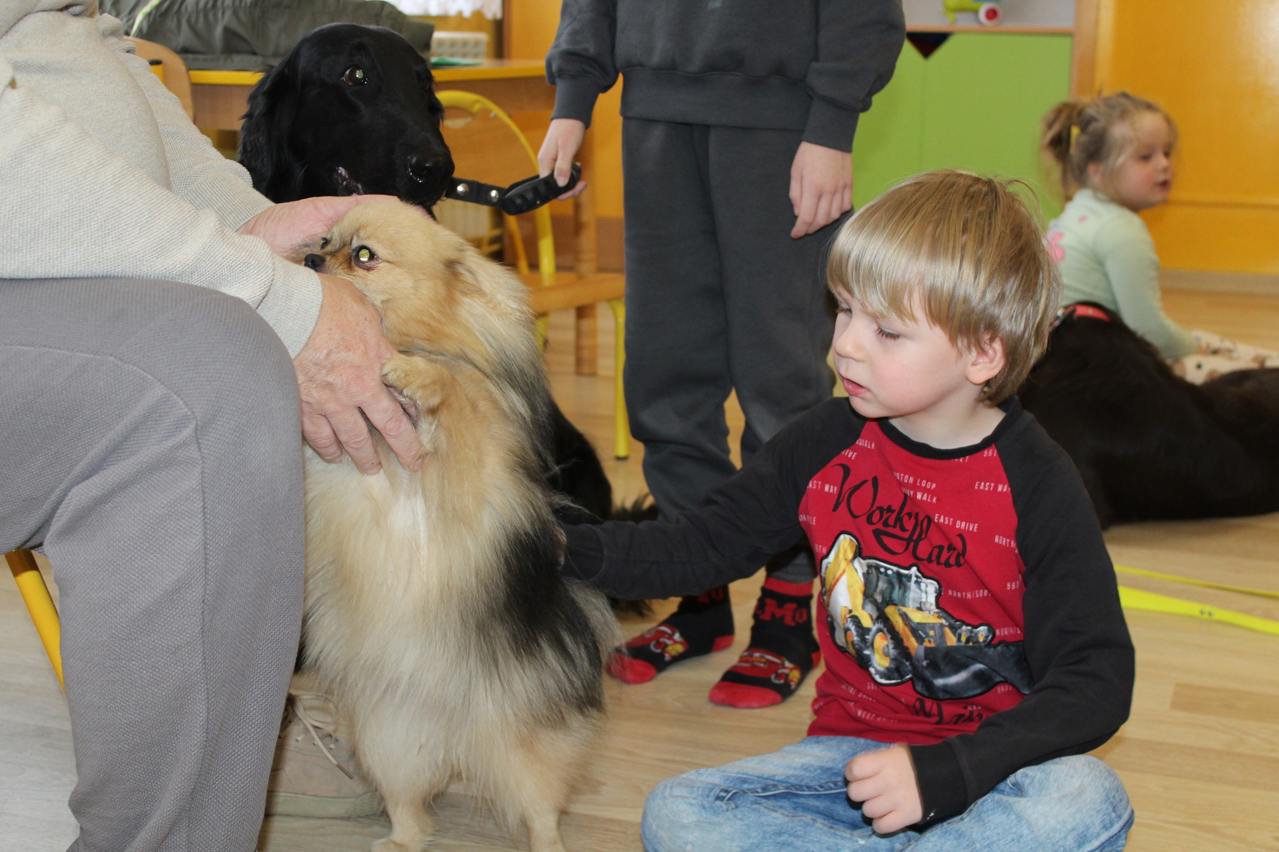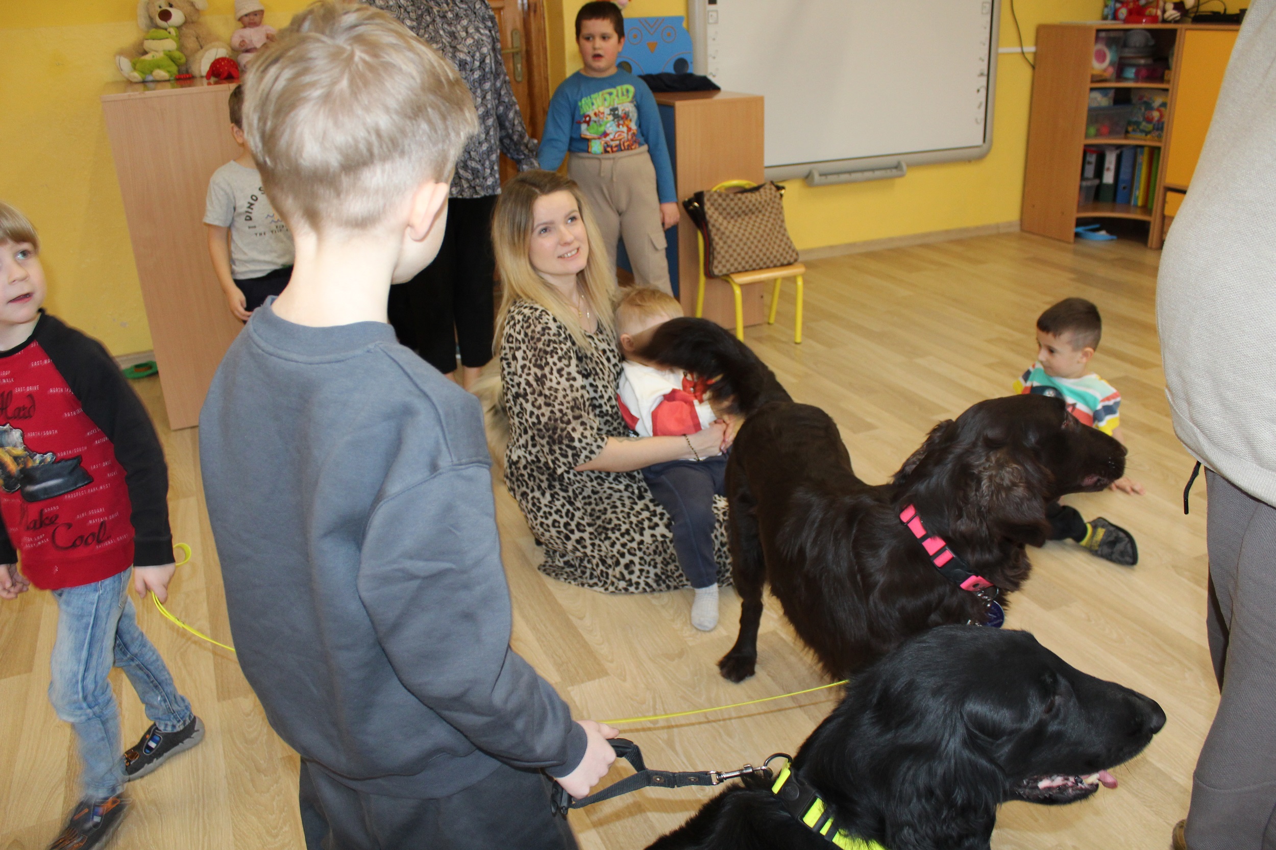 W dniach 25 i 26 lutego 2026 roku odbyły się w naszym przedszkolu Dni otwarte. Jak co roku przyszłe przedszkolaki i ich rodzice mieli możliwość obejrzenia przedszkola oraz poznania organizacji pracy w placówce. Nasi Goście wzięli udział w zajęciach dogoterapii prowadzonych przez terapeutów Fundacji Ama Canem z Łodzi, które były okazją do rozwijania zaufania i nawiązywania pozytywnej więzi z czworonogami. Uczestniczyli także w zajęciach rytmiczno - umuzykalniających, podczas których przedszkolaki doskonaliły umiejętności wokalne oraz rozwijały inne formy ekspresji muzycznej: ilustrowały gestem i ruchem treść piosenek, tworzyły akompaniament do utworów na instrumentach perkusyjnych.