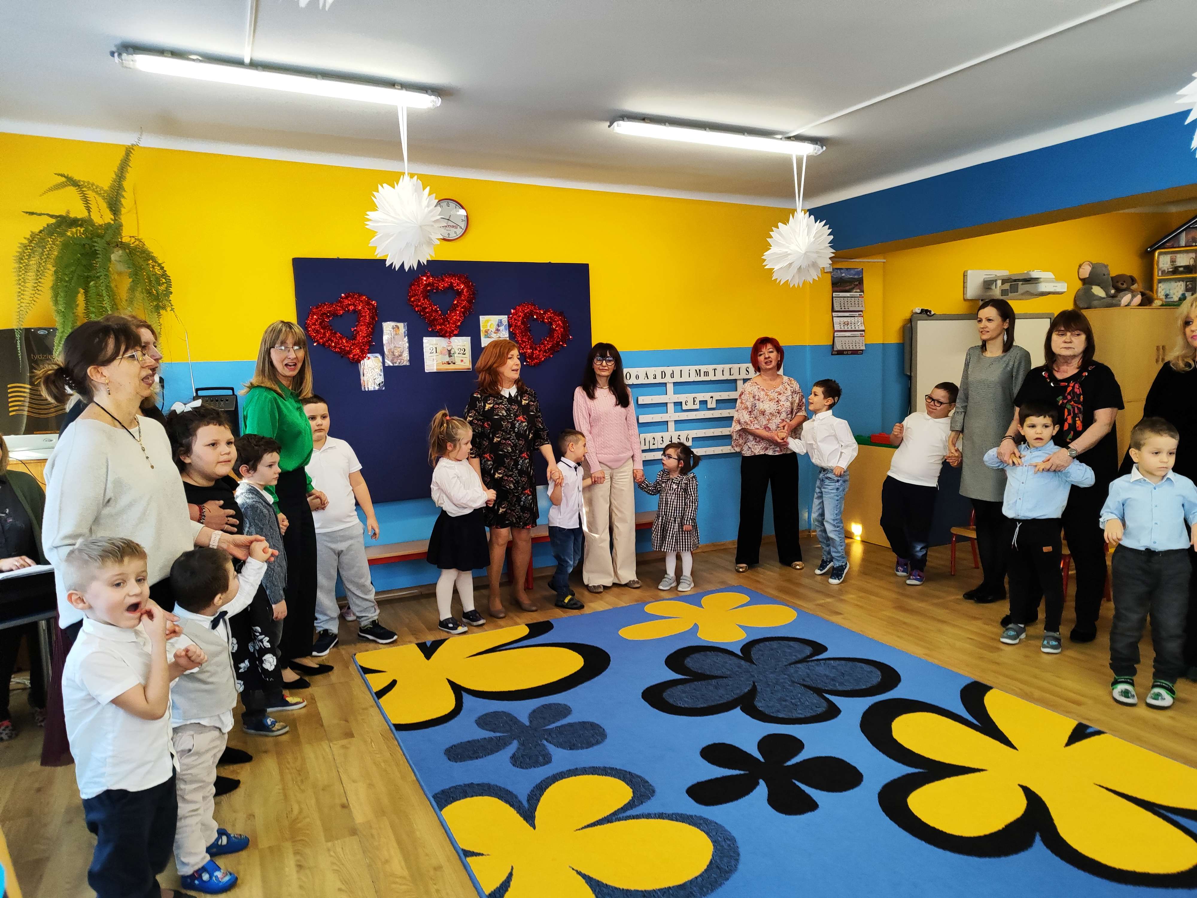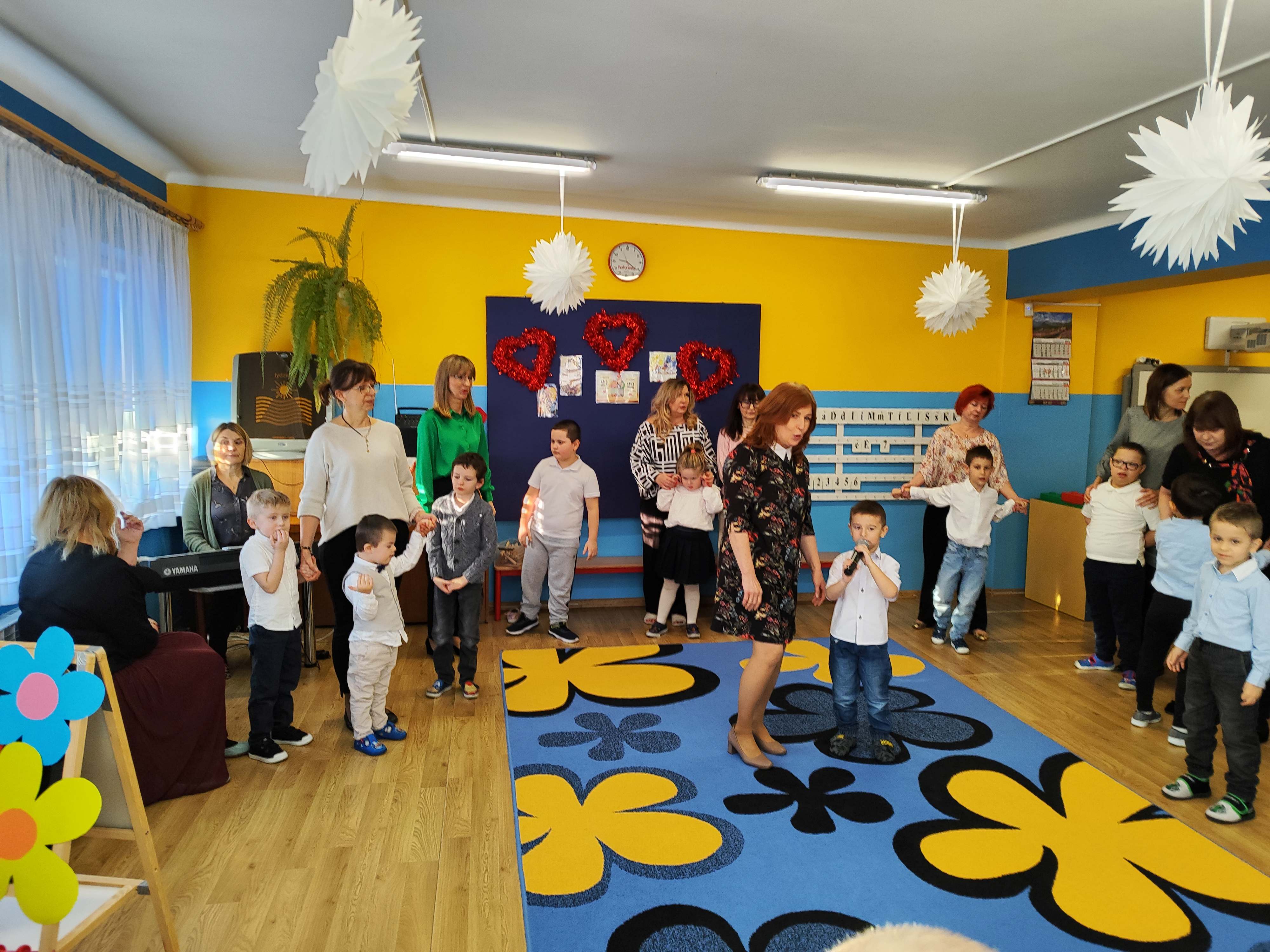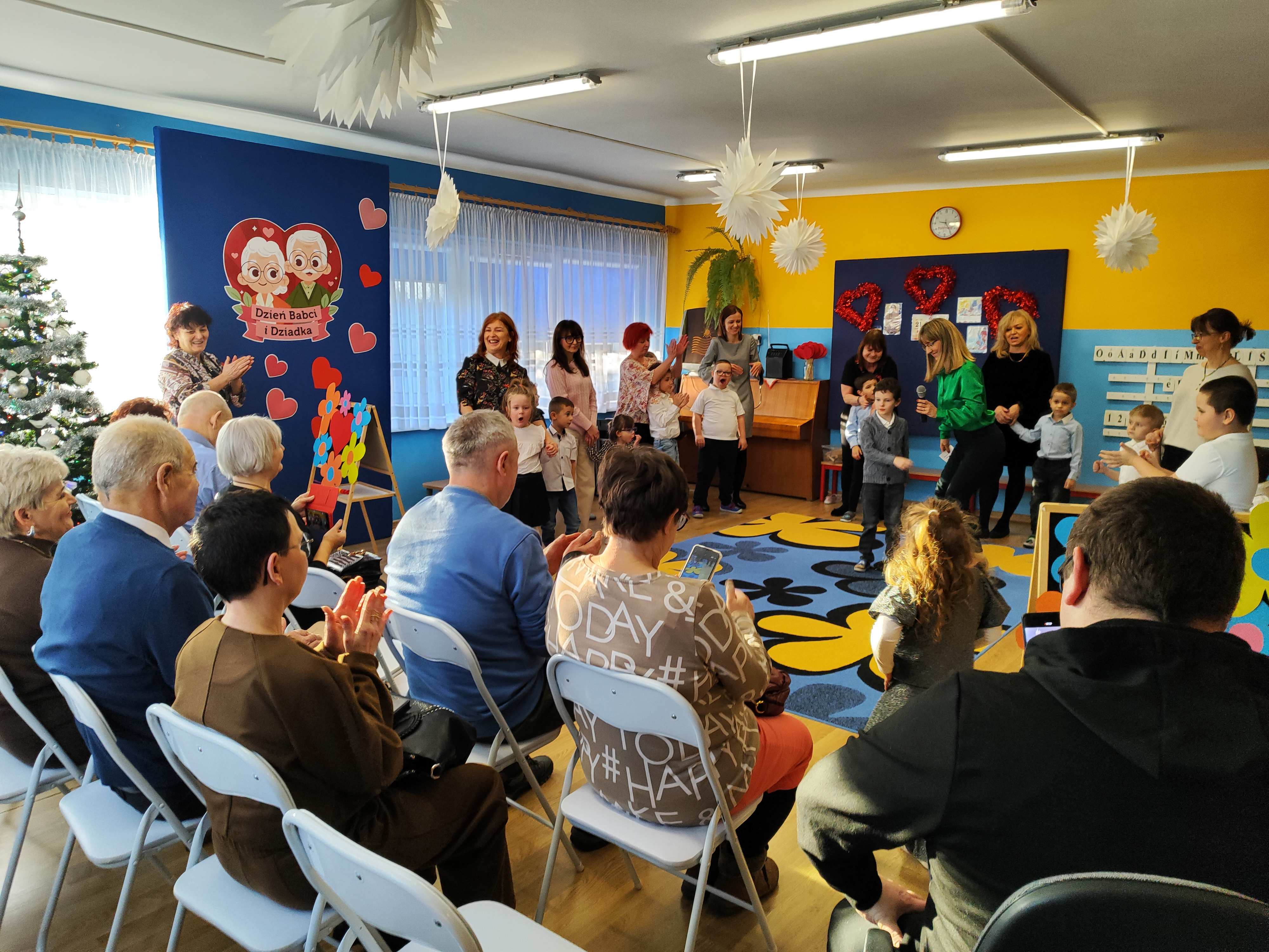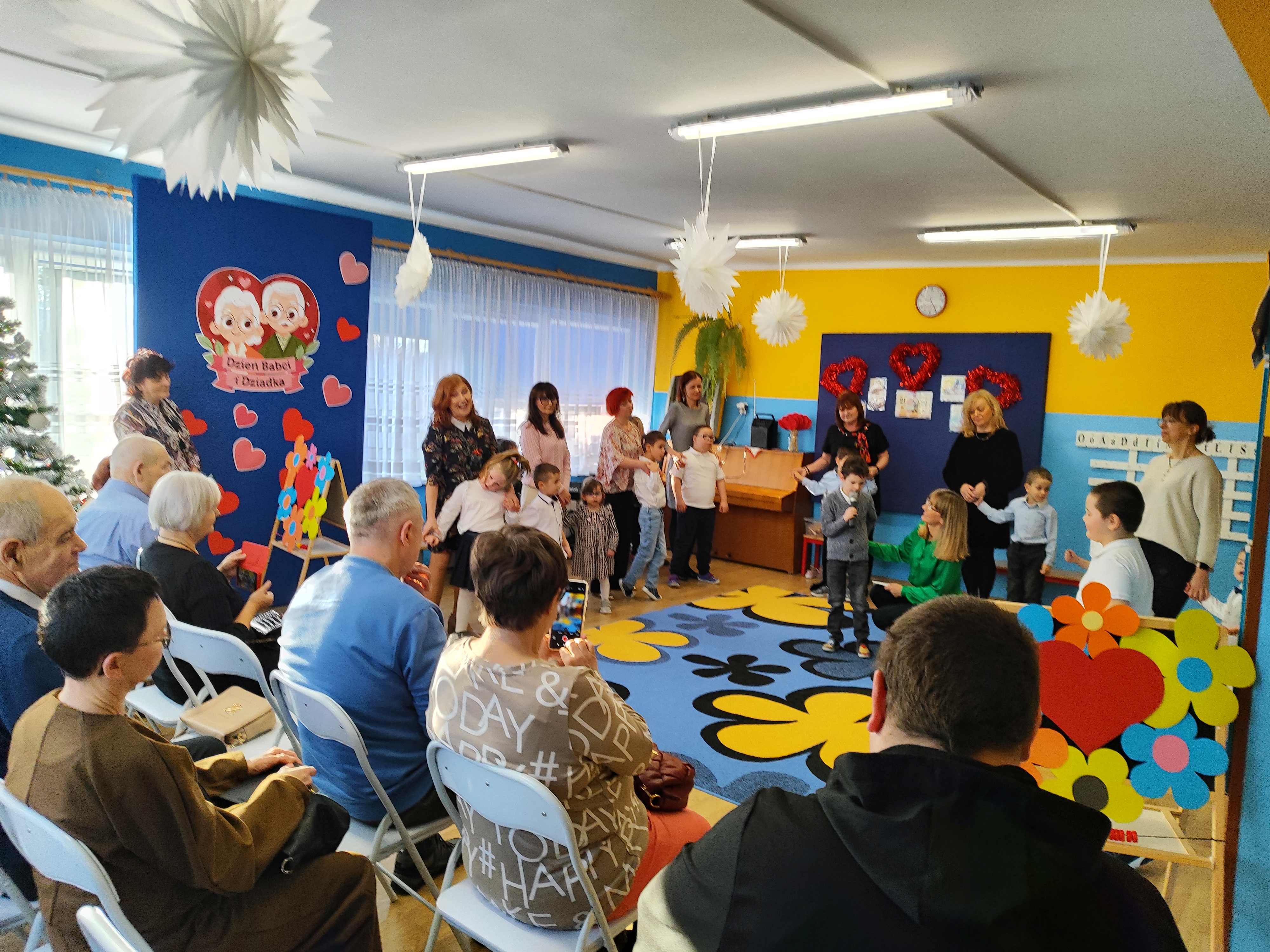 Podczas występu przybyli goście zostali zaproszeni także do wspólnej zabawy. Na zakończenie uroczystości dzieci wręczyły swoim Babciom i Dziadkom laurki. Nie zabrakło przytulasów i buziaków. Na przybyłych gości czekał również słodki poczęstunek.