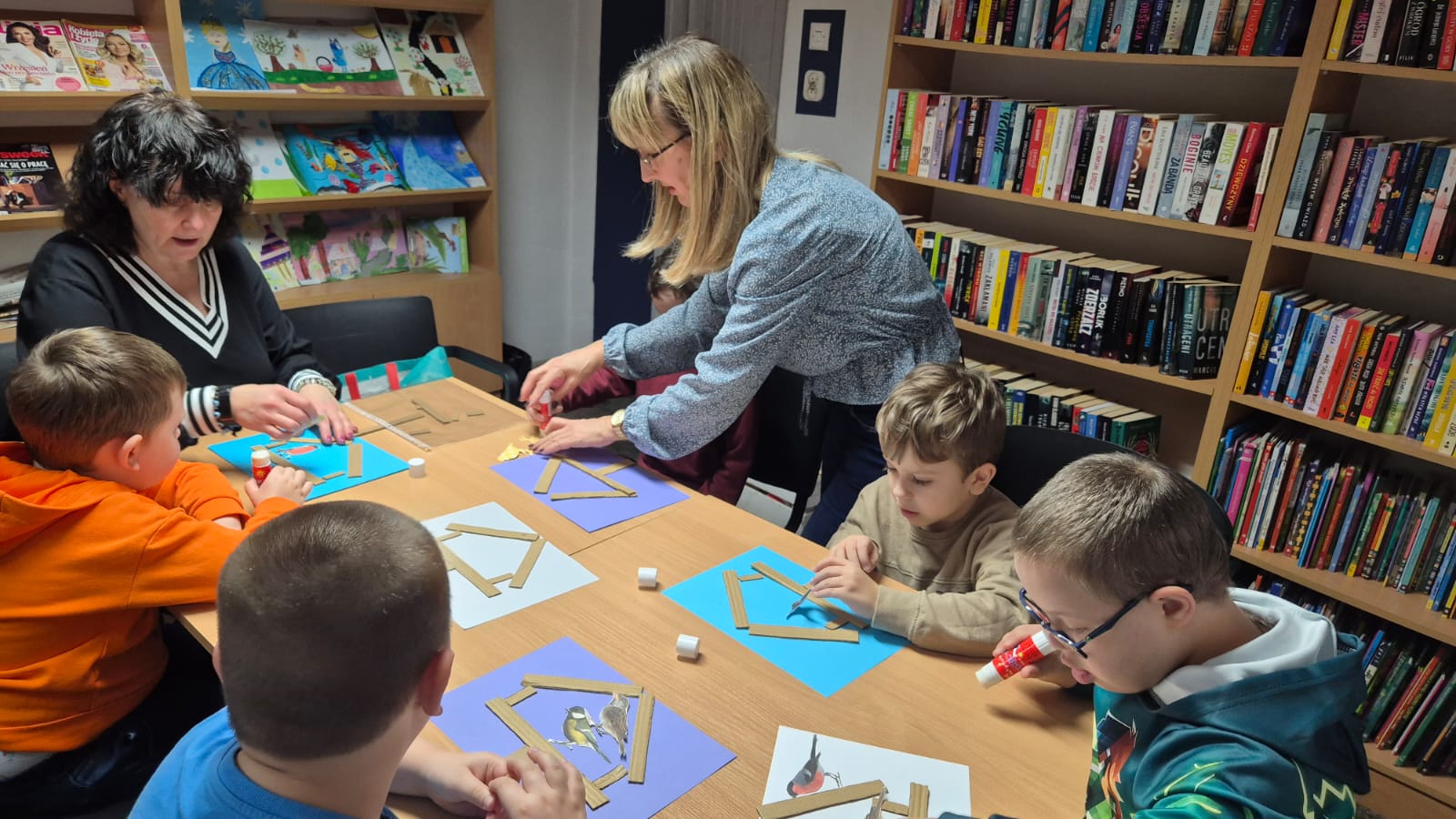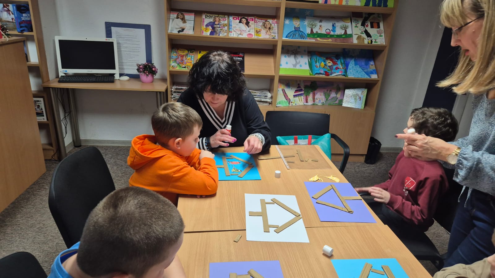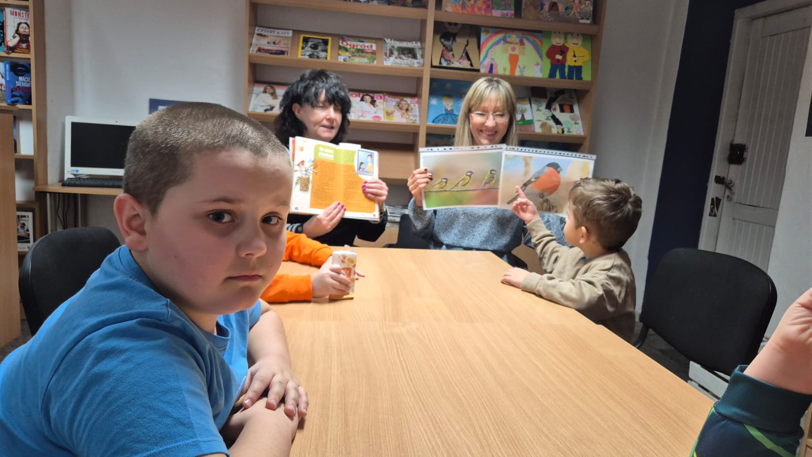 „Na pomoc ptakom” udaliśmy się do Filii Nr 2 Miejskiej Biblioteki Publicznej w Radomsku, która sąsiaduje z naszym przedszkolem. W czasie spaceru dzieci miały sposobność zaobserwowania ptaków poszukujących jedzenia.