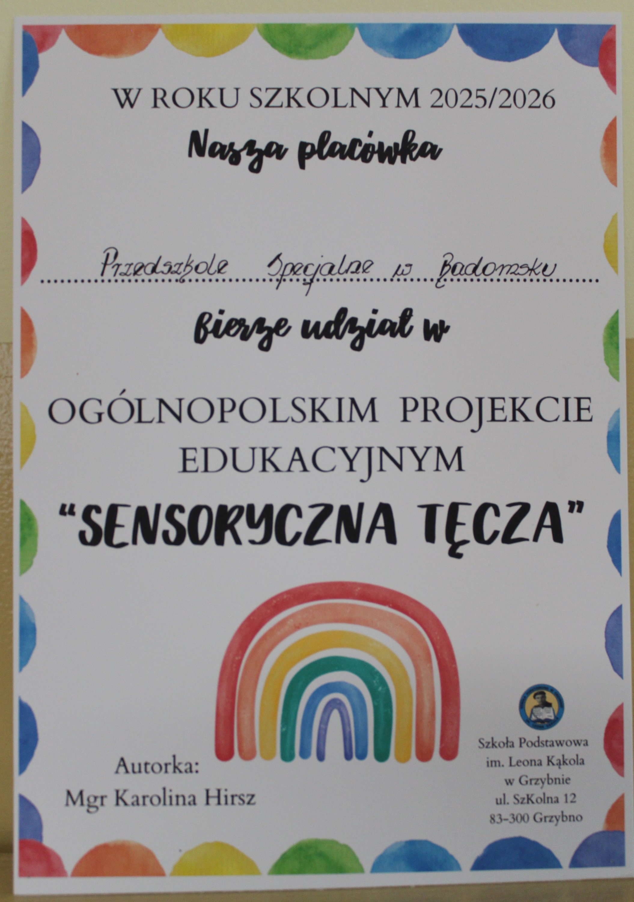 Ogólnopolski Projekt Edukacyjny "Sensoryczna Tęcza"