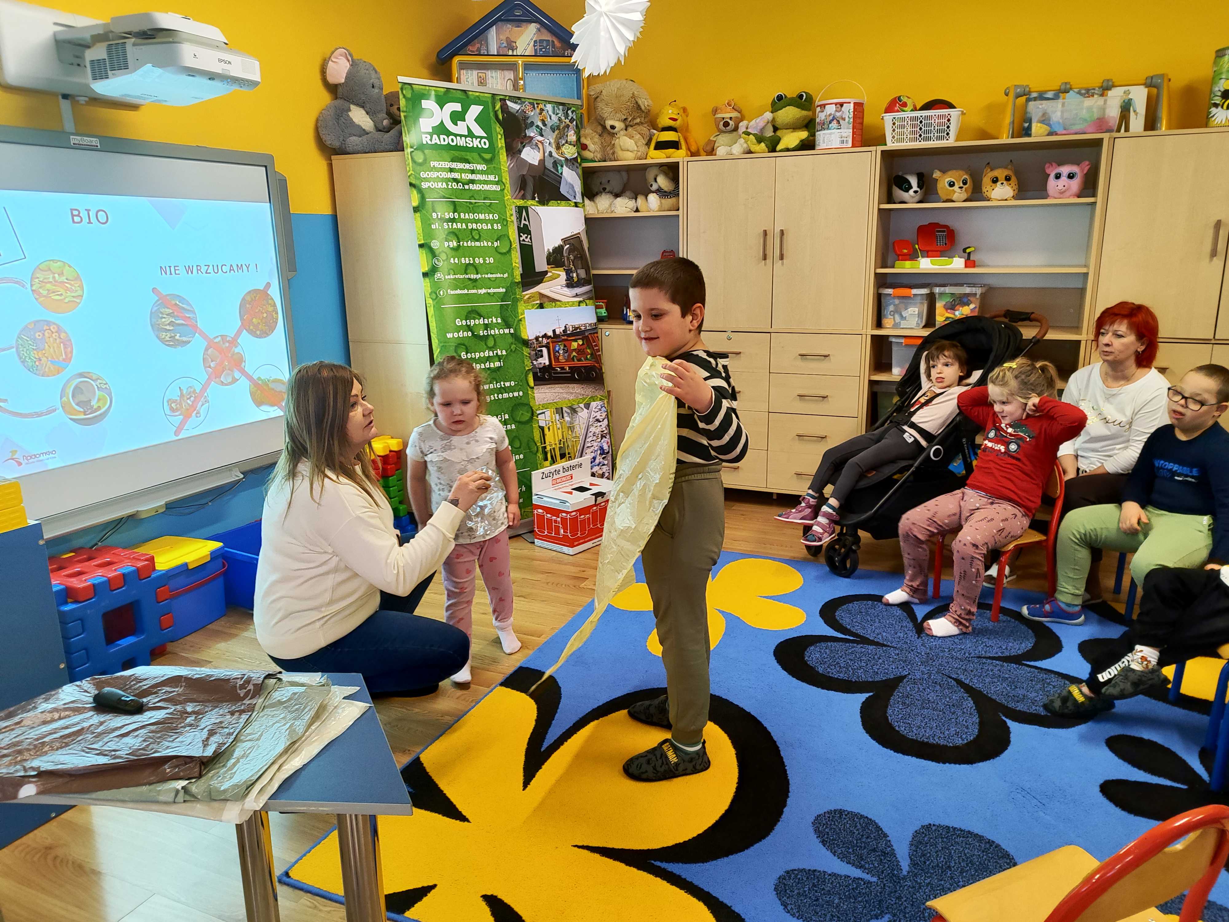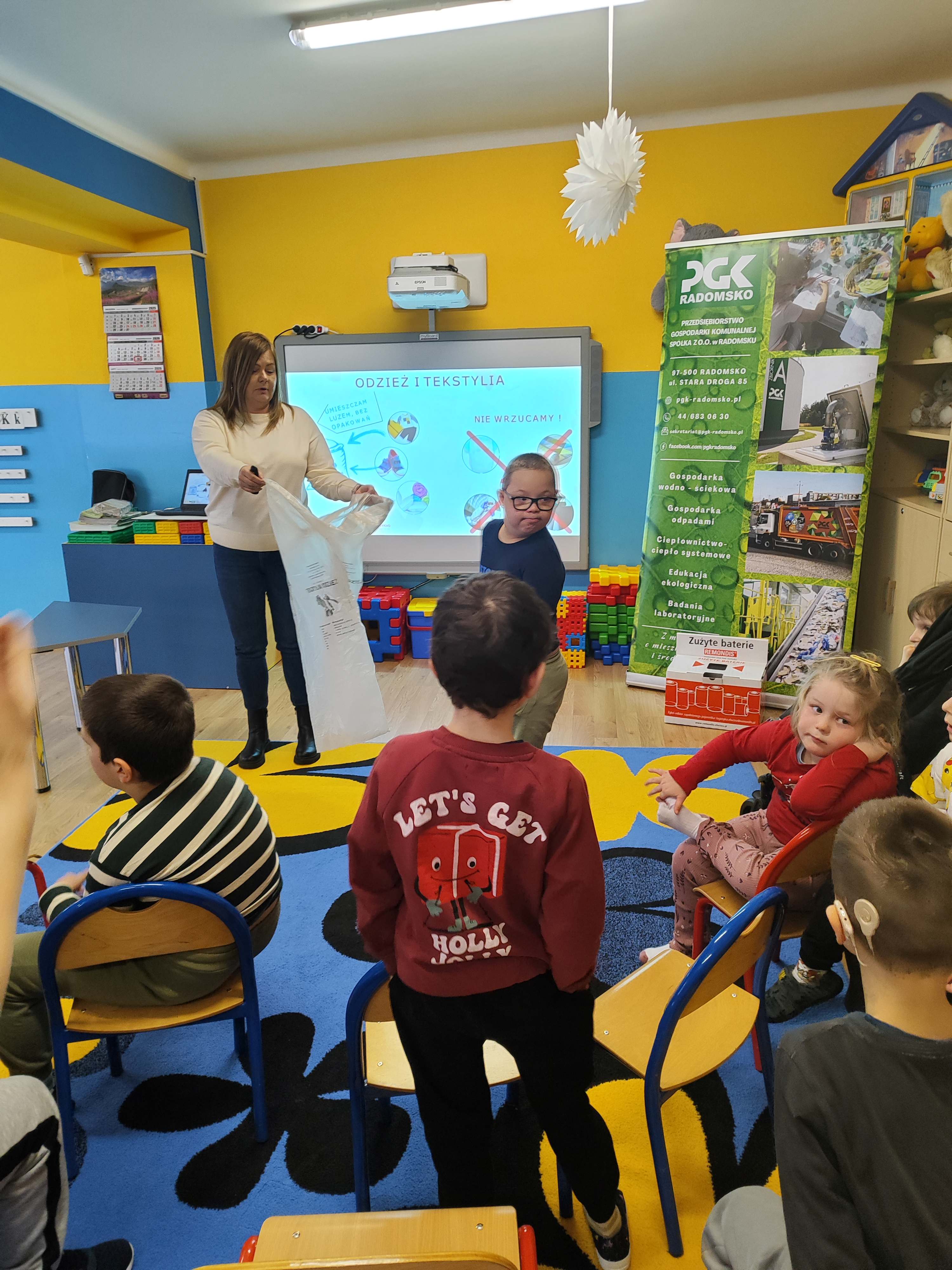 W dniu 04.03.2026r. nasze przedszkole odwiedziły panie z Przedsiębiorstwa Gospodarki Komunalnej w Radomsku z pogadanką na temat prawidłowej segregacji odpadów i właściwego postępowania z bateriami.