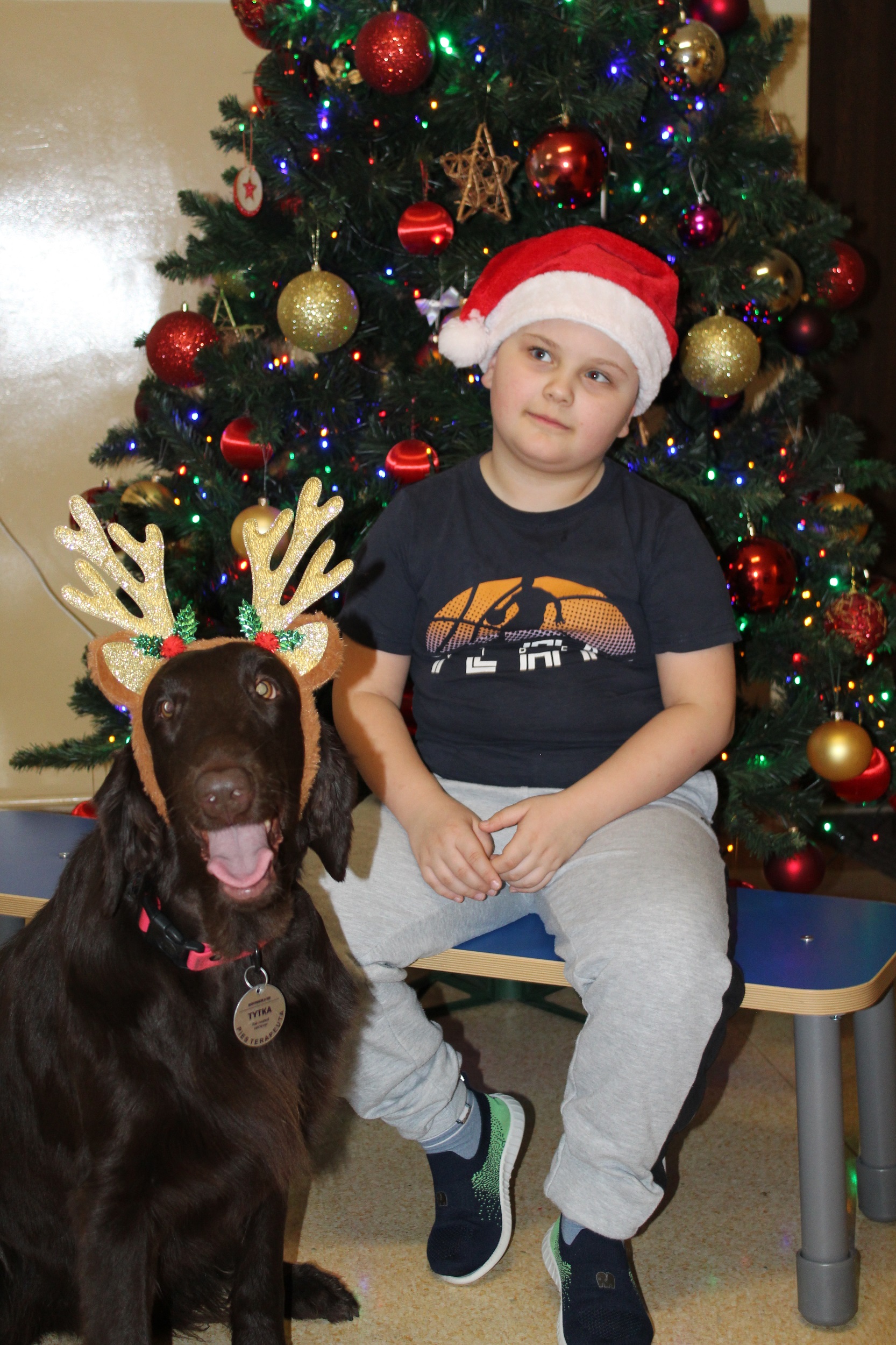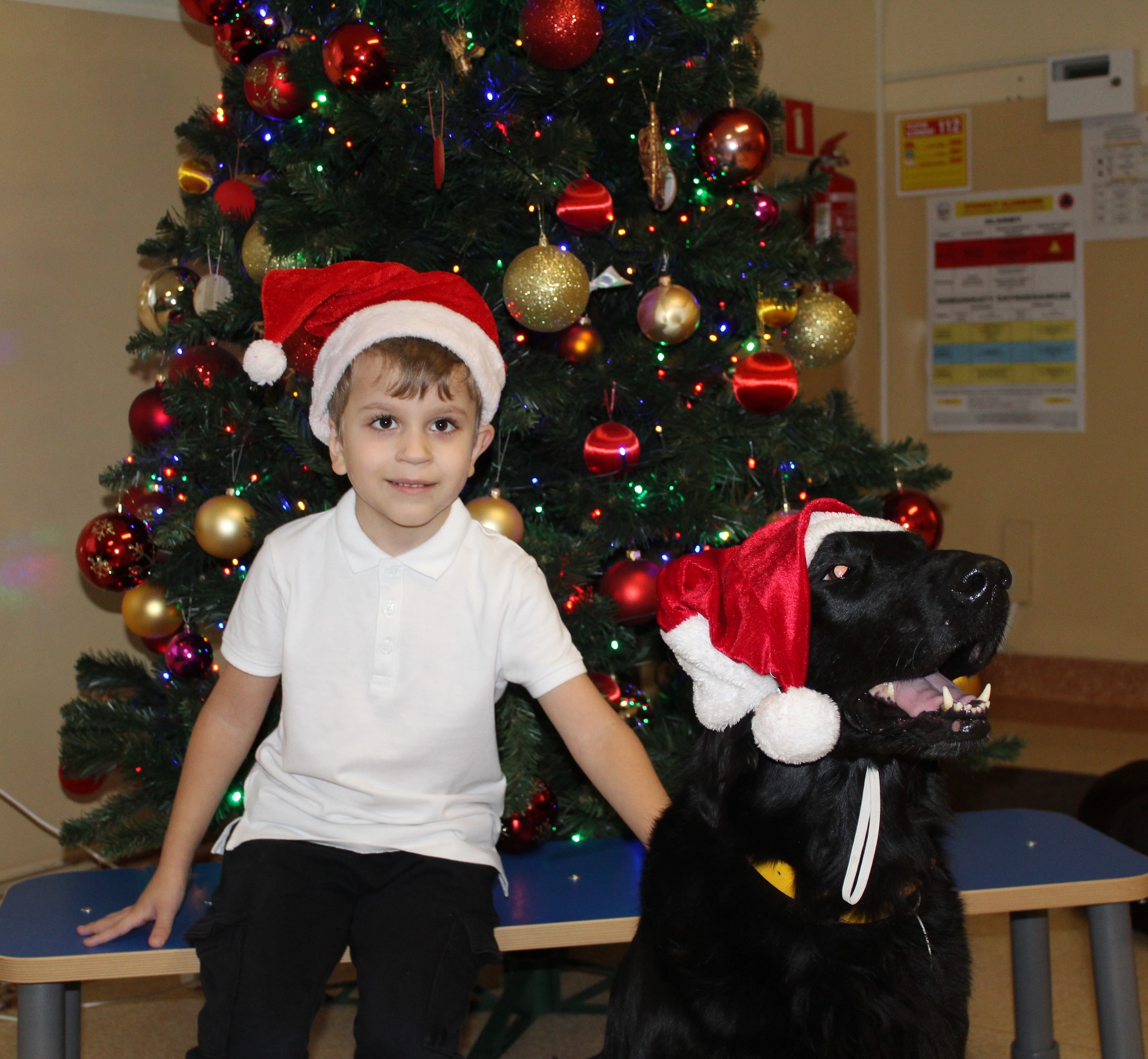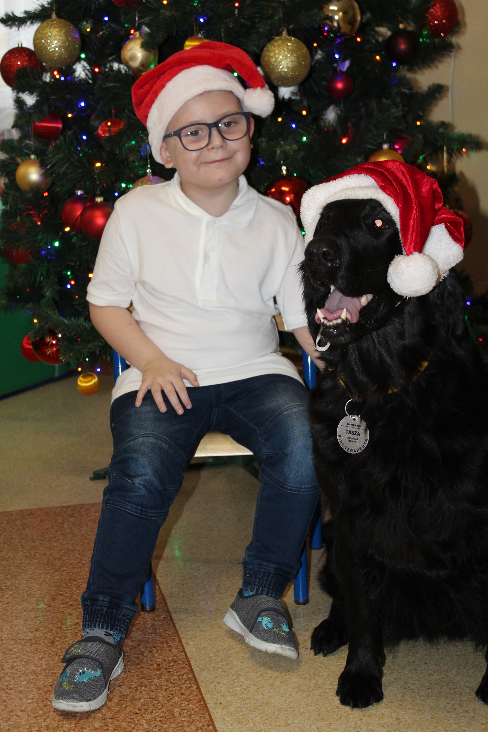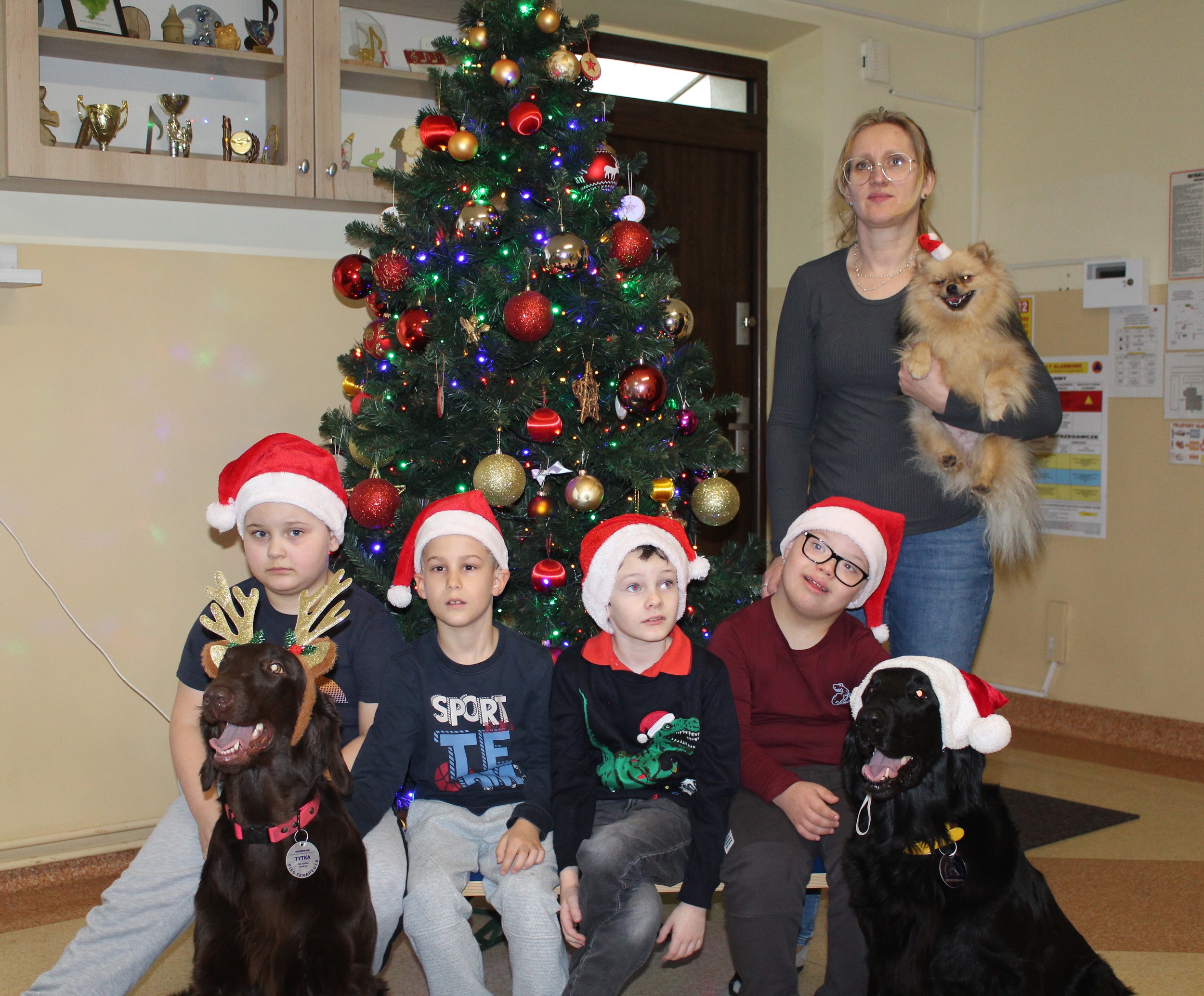 W czwartek 11 grudnia 2025 roku odbyły się w naszym przedszkolu wyjątkowe zajęcia z dogoterapii, prowadzone przez terapeutów Fundacji Ama Canem, podczas których połączono magię świąt z terapeutycznym kontaktem z czworonogami, tworząc dla dzieci miłą niespodziankę.