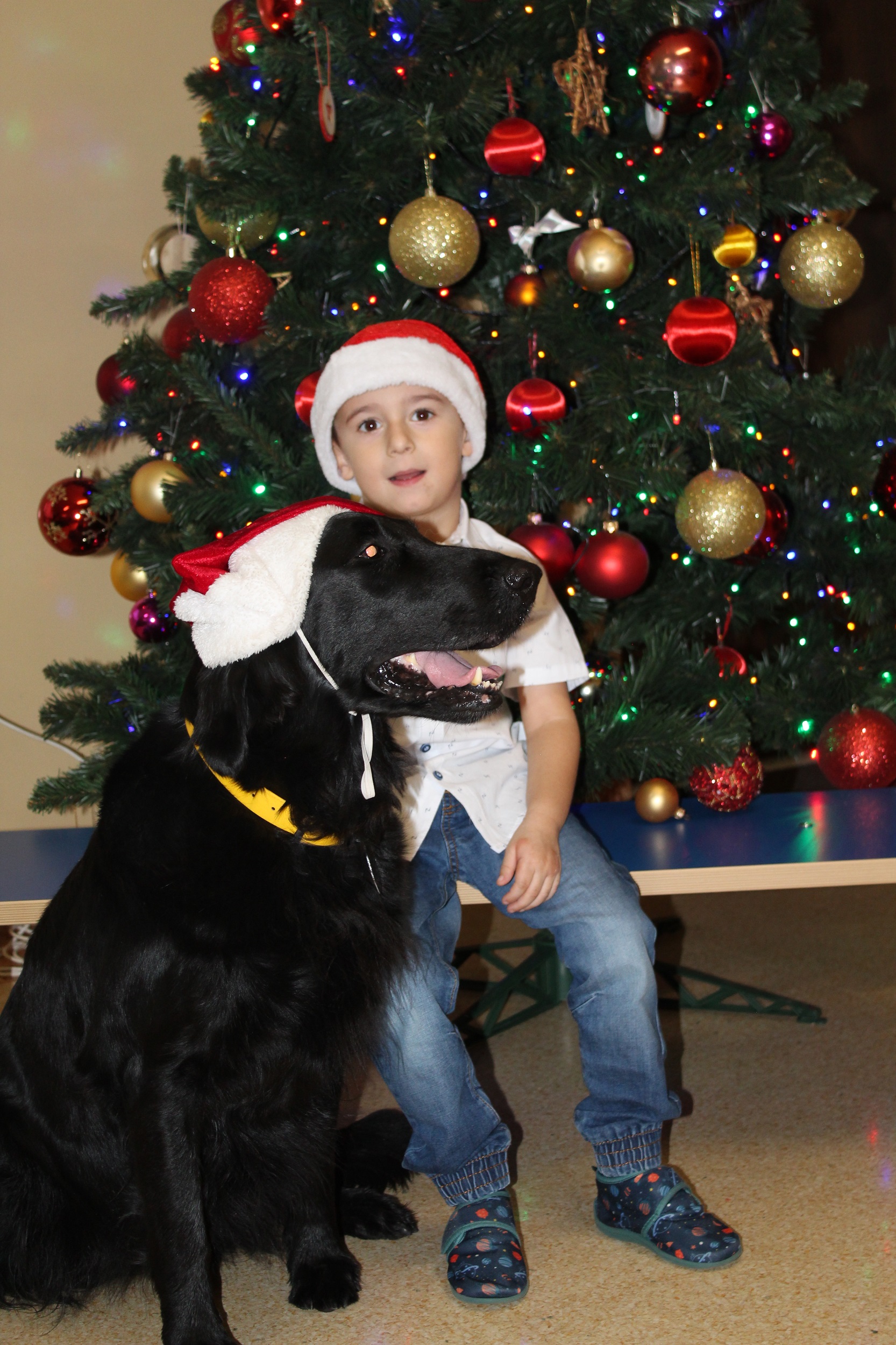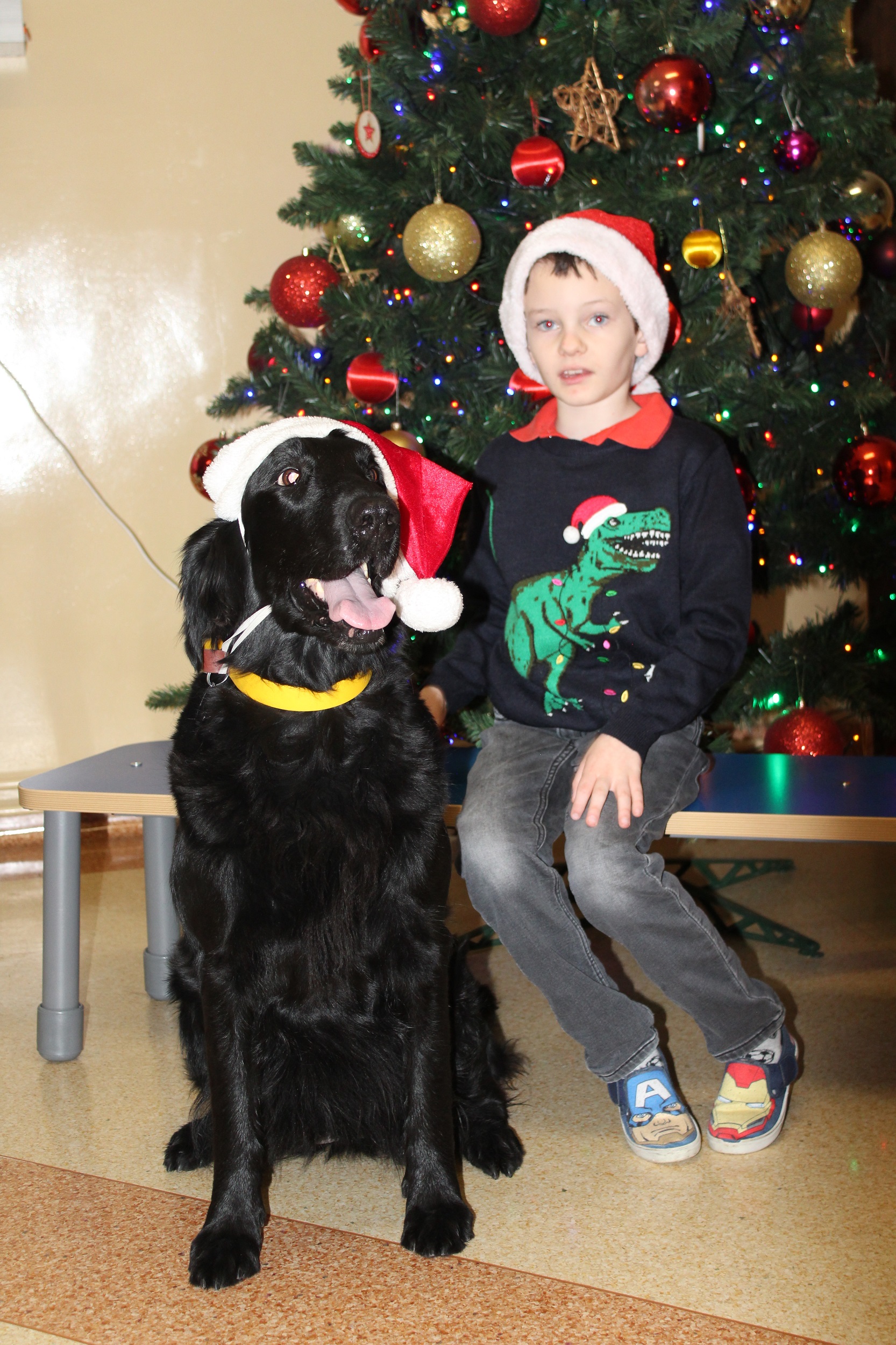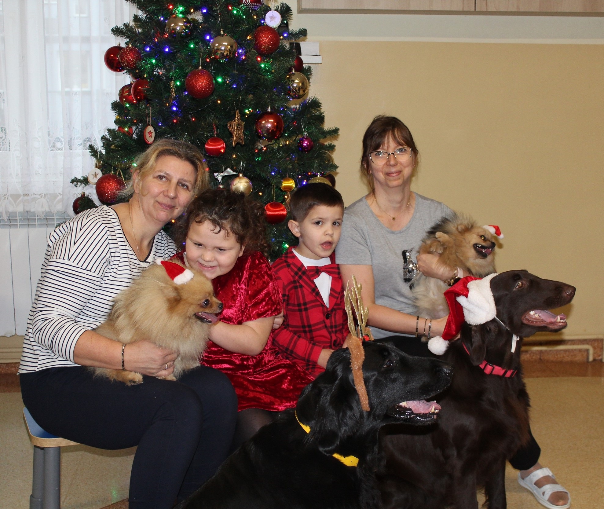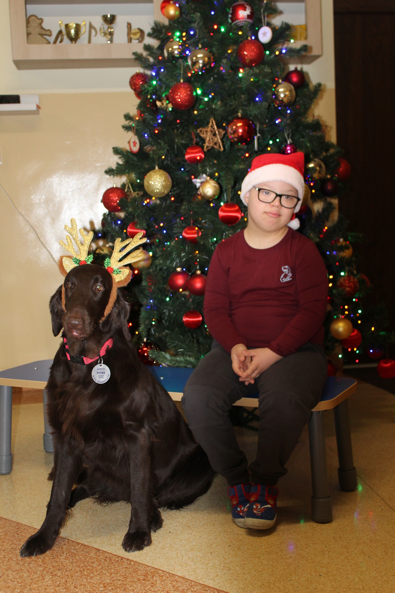 W czwartek 11 grudnia 2025 roku odbyły się w naszym przedszkolu wyjątkowe zajęcia z dogoterapii, prowadzone przez terapeutów Fundacji Ama Canem, podczas których połączono magię świąt z terapeutycznym kontaktem z czworonogami, tworząc dla dzieci miłą niespodziankę.