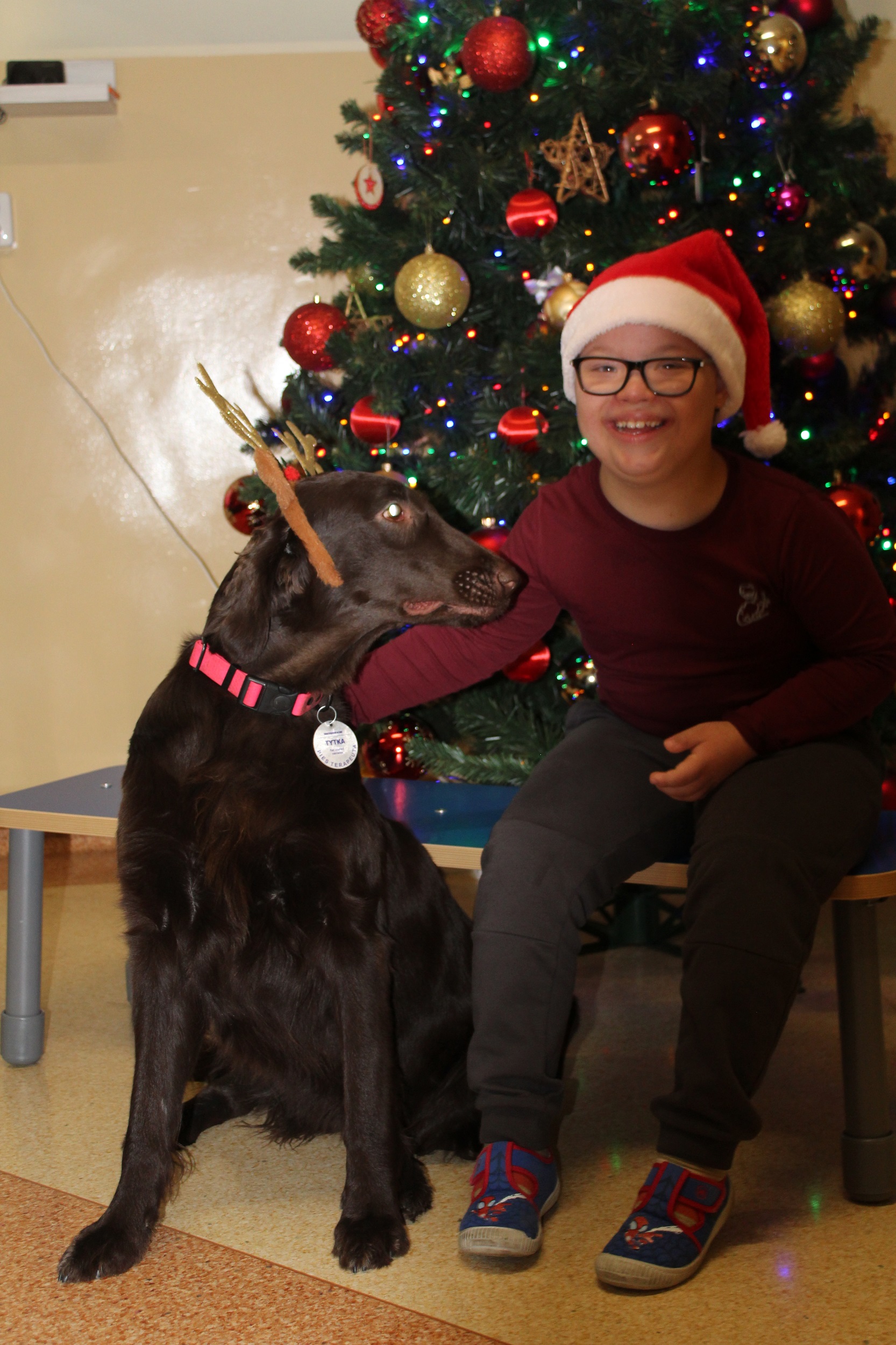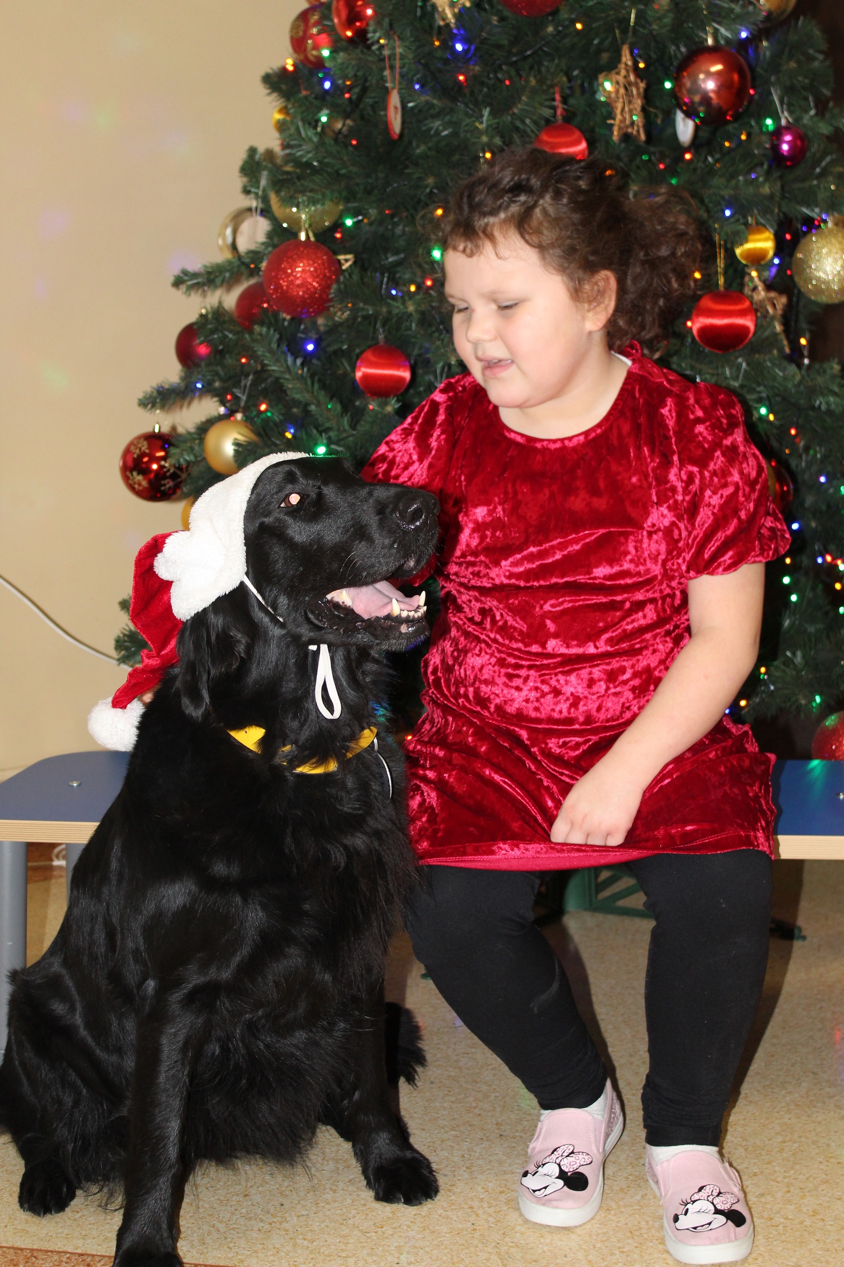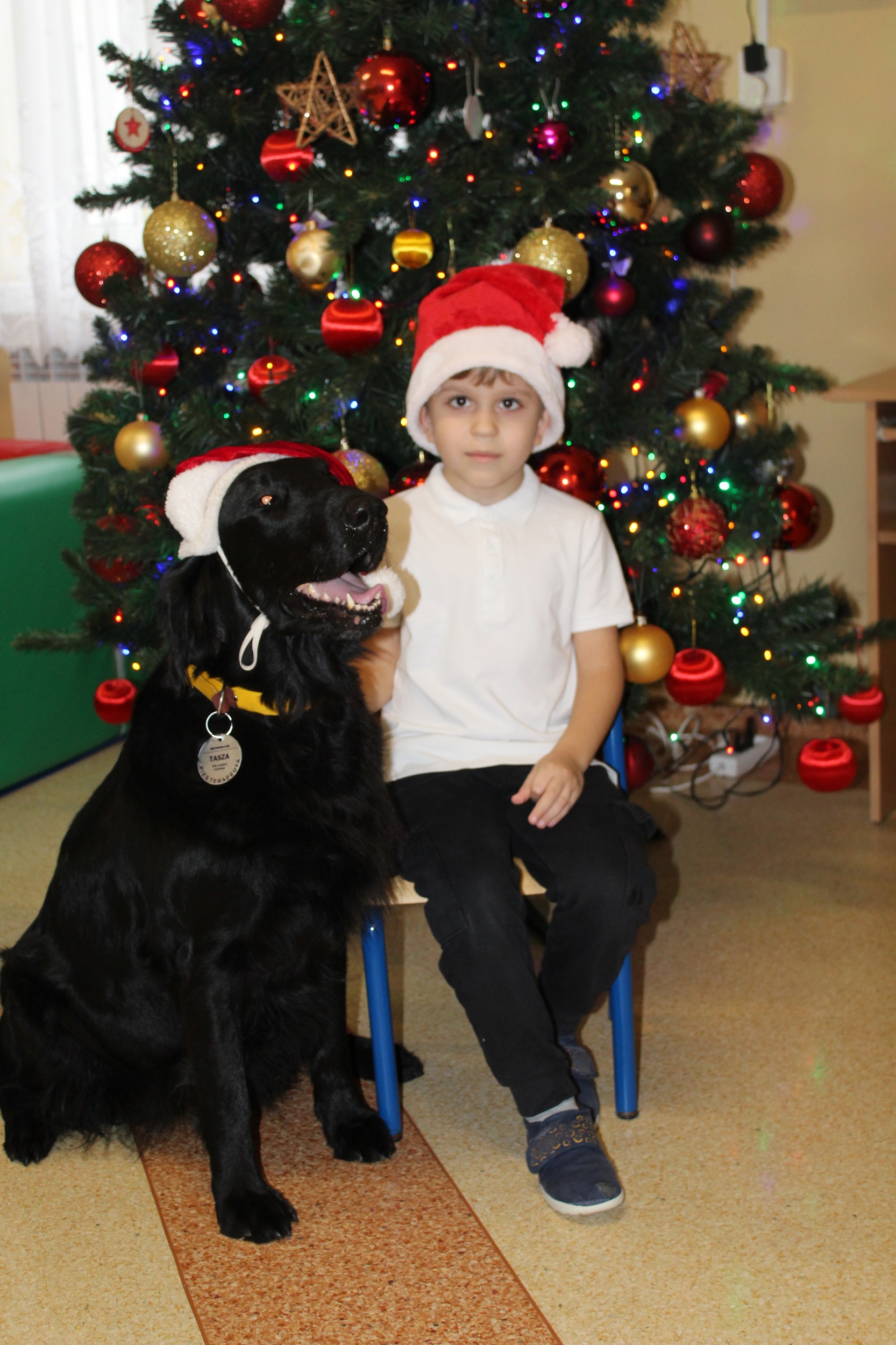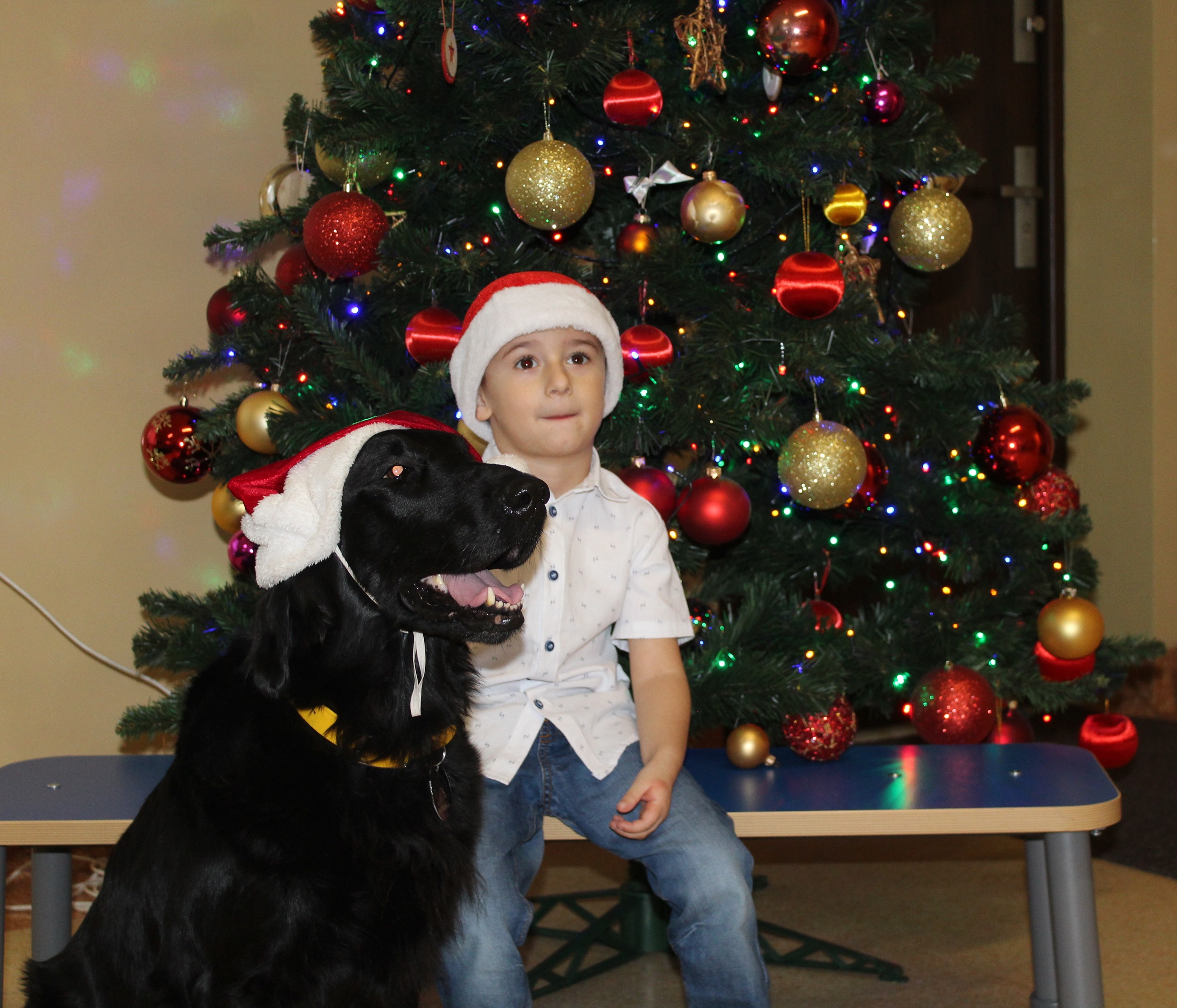 W czwartek 11 grudnia 2025 roku odbyły się w naszym przedszkolu wyjątkowe zajęcia z dogoterapii, prowadzone przez terapeutów Fundacji Ama Canem, podczas których połączono magię świąt z terapeutycznym kontaktem z czworonogami, tworząc dla dzieci miłą niespodziankę.